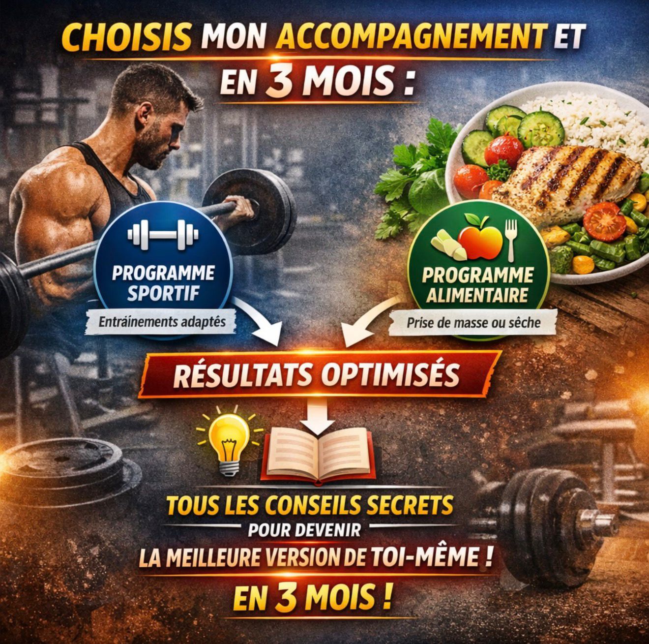 Prise de masse, sèche ou recomposition corporelle : tout est pensé pour t’aider à devenir la meilleure version de toi-même, en seulement 3 mois.
